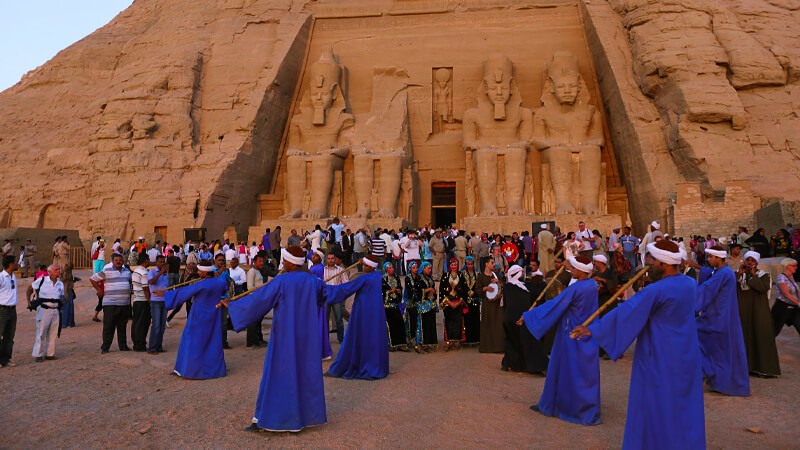 Early morning, wake up & drive to Abu Simbel to witness Sun Festival. The Sun Festival takes place at Abu Simbel, a famous temple near Aswan in southern Egypt. It was built by Pharaoh Ramses II in the 13th century BCE. The temple honours Ramses II, the gods, and especially Ra, the sun god. The temples are famous not only for their grand scale but also for their precise alignment with the sun. The highlight of the festival revolves around a solar phenomenon that occurs twice a year. On these days, the sunlight reaches deep inside the temple and lights up statues of four gods. These include Ramses II, Ra, Amun, and Ptah. Interestingly, the rays of the sun illuminate all the statues except Ptah, who remains in the shadows as befits his association with the underworld. This solar alignment is a brilliant example of ancient Egyptian engineering. The dates of the Sun Festival are believed to celebrate Ramses II’s coronation and birthday. It’s a symbol of the Pharaoh’s connection with the gods and Egypt’s deep spiritual roots. visitors from around the world gather at the Abu Simbel Temples before sunrise to witness the incredible moment when the sun’s rays travel through the temple entrance and illuminate the inner sanctuary, lighting up the statues of the gods. Drive back to Aswan & lunch at Indian restaurant. Rest of the day free to enjoy Aswan or shopping. Dinner at Indian restaurant. Overnight at the hotel. Meals: Breakfast box, Lunch & dinner.